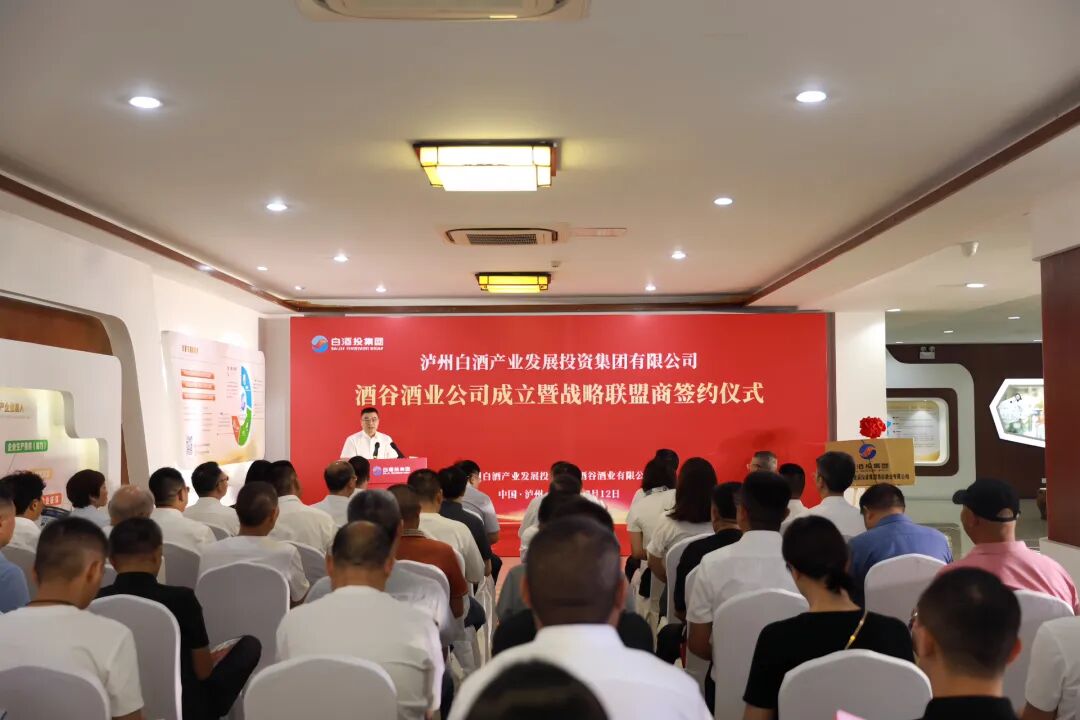 四川瀘州白酒產(chǎn)業(yè)園區(qū)黨工委書記張毅賢向新成立的酒谷酒業(yè)公司表示祝賀,用“立新格局”“闖新賽道”“拓新境界”勉勵新公司聚合產(chǎn)區(qū)力量、躍升產(chǎn)品價值,建成“中國原酒產(chǎn)業(yè)鏈綜合服務(wù)商標(biāo)桿”,助推“瀘酒方陣”在千億級高起點再次跑出加速度。他表示園區(qū)管委會將以“小管委會+大專業(yè)公司”改革為契機(jī),竭力打造營商環(huán)境,構(gòu)建產(chǎn)業(yè)生態(tài),譜寫“中國酒谷·國釀半島”的時代華章!▲四川瀘州白酒產(chǎn)業(yè)園區(qū)黨工委書記張毅賢致辭瀘州市酒業(yè)發(fā)展促進(jìn)局黨組書記、局長葉仕良作了講話,他表示,當(dāng)前正處于白酒產(chǎn)業(yè)深度調(diào)整關(guān)鍵期,酒谷酒業(yè)公司的誕生與戰(zhàn)略聯(lián)盟的組建,既是瀘州白酒產(chǎn)業(yè)順勢而為、破局突圍的又一新嘗試,更是瀘州白酒產(chǎn)業(yè)建圈強(qiáng)鏈、實現(xiàn)高質(zhì)量發(fā)展戰(zhàn)略落點,標(biāo)志著瀘州白酒正從“企業(yè)單兵突進(jìn)”加快向“產(chǎn)業(yè)軍團(tuán)作戰(zhàn)”轉(zhuǎn)變,通過政企聯(lián)動,堅定信心,共克時艱,穿越周期!▲瀘州市酒業(yè)發(fā)展促進(jìn)局黨組書記、局長葉仕良講話隨后,四川瀘州白酒產(chǎn)業(yè)園區(qū)管委會主任羅了威、集團(tuán)黨委書記、董事長劉斌共同為瀘州白酒產(chǎn)業(yè)發(fā)展投資集團(tuán)酒谷酒業(yè)有限公司授牌。活動現(xiàn)場,新授牌的白酒投酒谷酒業(yè)公司分別與瀘州巴蜀液酒業(yè)(集團(tuán))有限公司、瀘州國之榮耀酒業(yè)有限公司、四川桂康酒業(yè)集團(tuán)有限公司、瀘州納貢莊園酒業(yè)有限公司及不老潭酒業(yè)等22家酒類生產(chǎn)企業(yè)、新零售企業(yè)共同簽訂戰(zhàn)略聯(lián)盟合作協(xié)議。